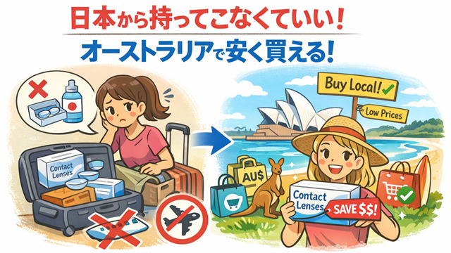 日本で使っているのと全く同じコンタクトレンズを、オーストラリアで日本と同等、またはそれ以下の価格で購入できます。